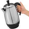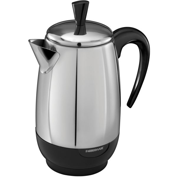 Rediscover the robust aroma and taste of percolated coffee with the FARBERWARE® 2-8 Cup* Stainless Steel Electric Percolator. This premium unit produces about one cup per minute, so there’s no waiting around for delicious coffee. The automatic “keep warm” function gently warms coffee after perking, and the detachable cord makes for easy pouring and storage.